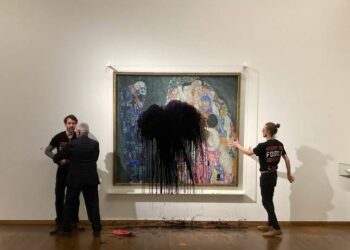Ambientalistas jogaram tinta preta no quadro Morte e Vida, do pintor austríaco Gustav Klimt, na terça-feira 15, em Viena, na Áustria. ...
