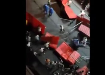 Manifestantes entraram em confronto com a polícia na metrópole industrial da China Guangzhou por causa de medidas estritas do COVID, ...