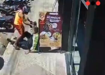 Vídeos que circulam nas redes sociais mostram um momento em que um Guarda Municipal sofre um revés após tentar apreender ...