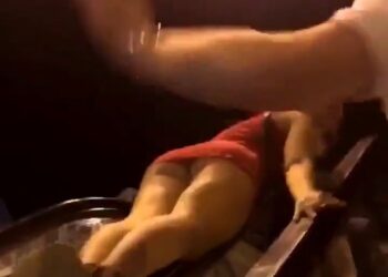 Um vídeo que circula nas redes sociais mostra uma jovem praticamente seminua após ter seu vestido arrastado caindo de uma ...