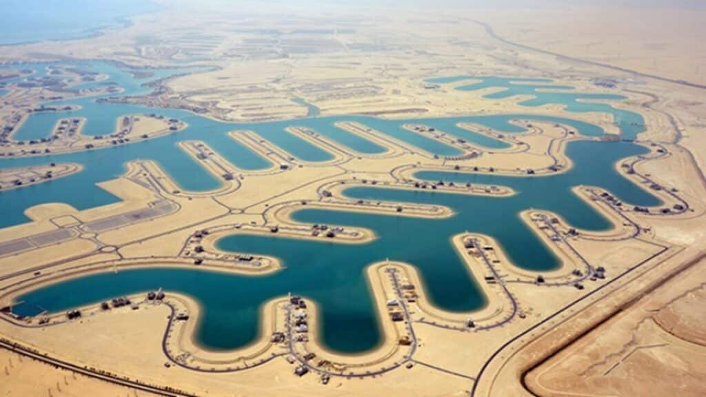 - Qual é a principal diferença entre Sabah Al Ahmad e as ilhas artificiais de Dubai? Enquanto as ilhas de Dubai foram criadas através de dragagem massiva e adição de terra no mar, Sabah Al Ahmad foi construída escavando o deserto e trazendo água do mar para o interior, respeitando o ambiente natural.