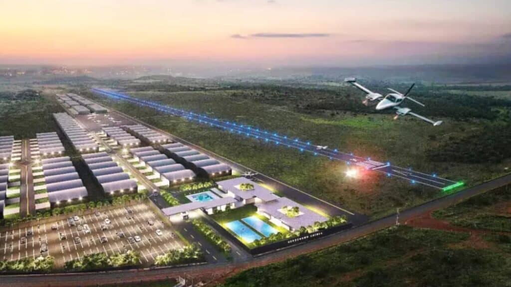 | Integração com polo industrial/logístico | O aeroporto será parte de um complexo maior, com instalação de empresas de tecnologia, mobilidade elétrica, energias renováveis, com investimentos estrangeiros (~R$ 2 bilhões) para apoiar a industrialização local. |