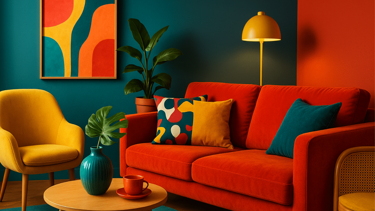 - Móveis ou almofadas coloridas como pontos de destaque.