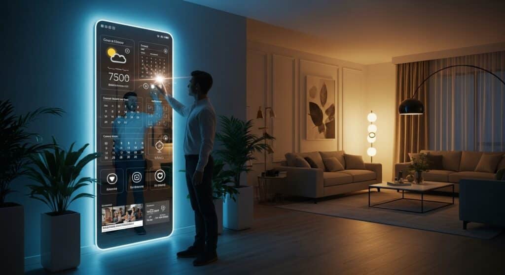 • Personalização: alguns modelos adaptam a iluminação e o conteúdo exibido conforme preferências do usuário.