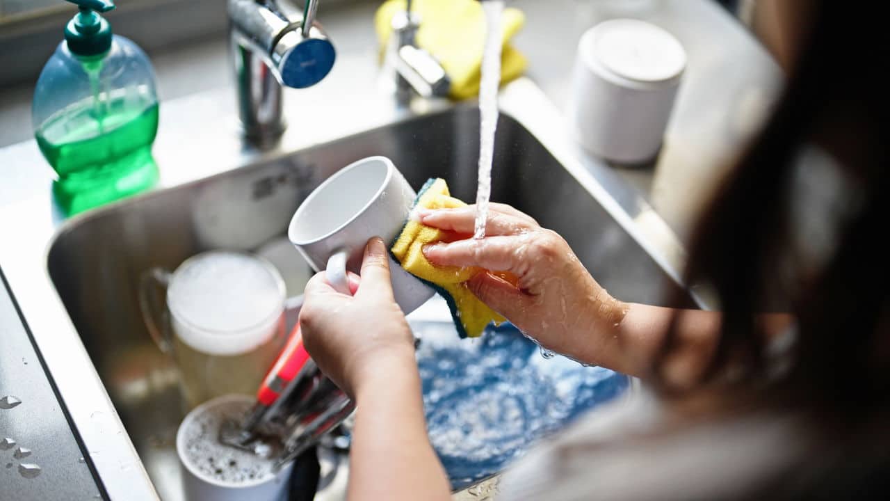 Lavando caneca branca com esponja (Créditos: depositphotos.com / Krakenimages.com)