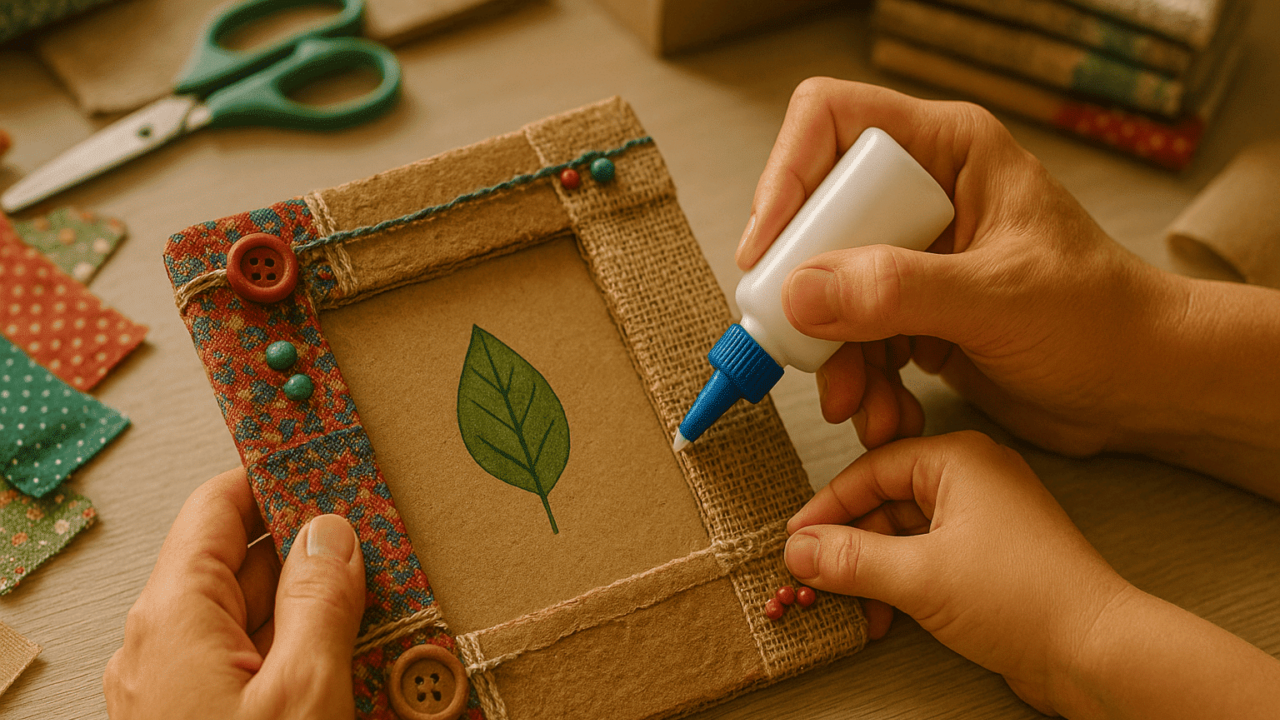 A cola branca é ideal para tecidos e papéis, enquanto a cola quente pode ser útil para elementos decorativos mais pesados, como botões e miçangas. - Como pendurar ou apoiar a moldura de papelão?