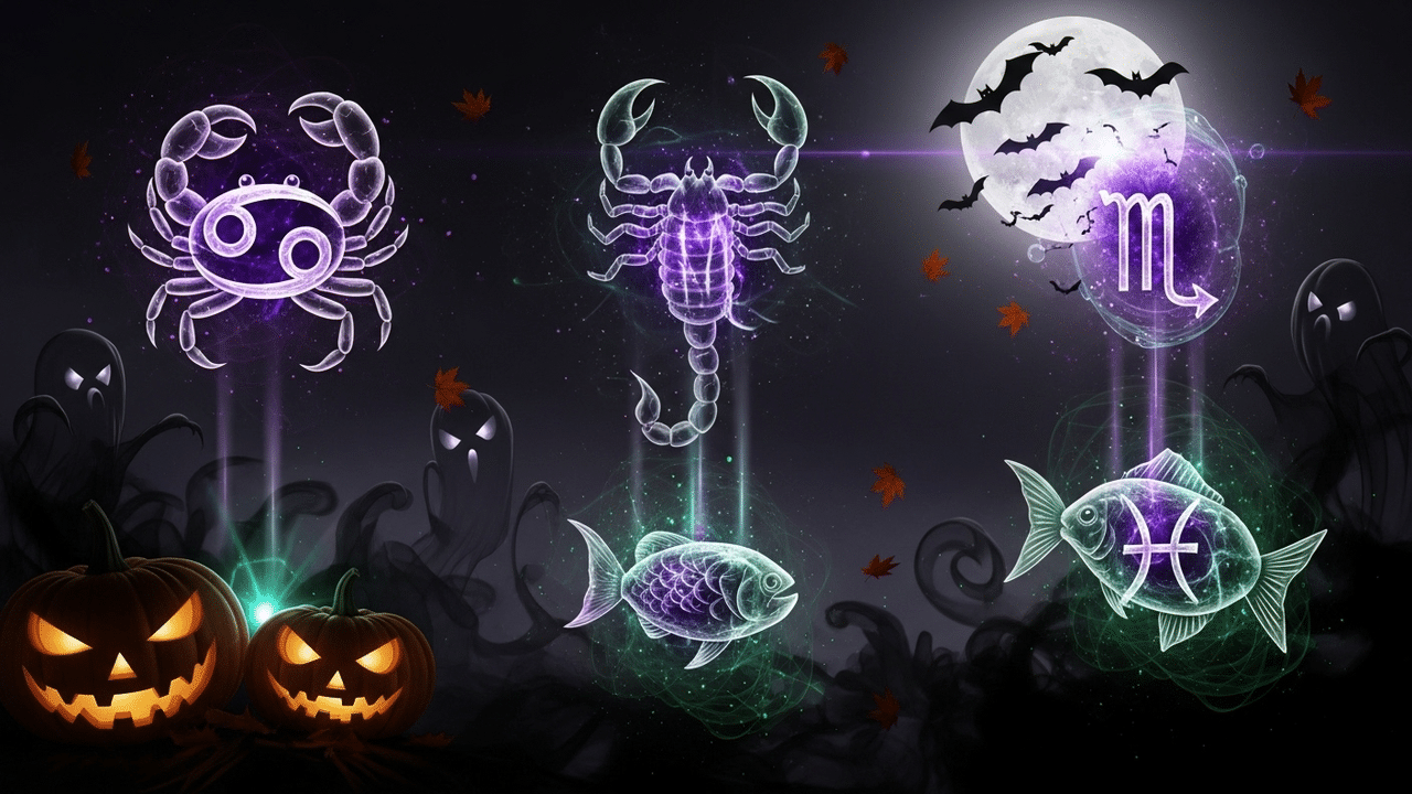 Durante o período do Halloween, Câncer e Peixes vivenciam essa energia de forma emocional e simbólica, cada um com nuances próprias que refletem sua natureza sensível e intuitiva.