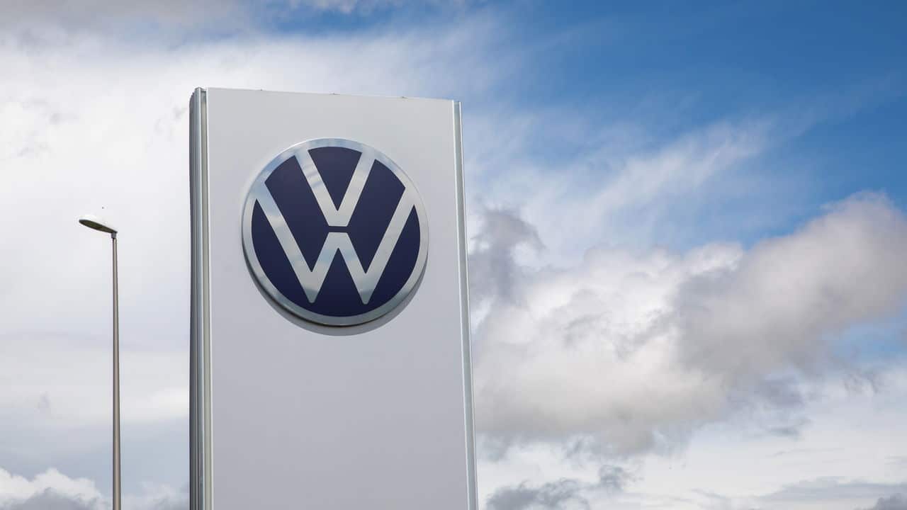 Totem branco com o logotipo da Volkswagen (Créditos: depositphotos.com / OceanProd)