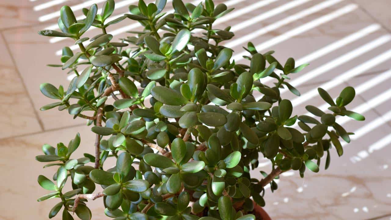 Crassula ovata, conhecida como jade, é uma suculenta com folhas carnudas e brilhantes, típica para ambientes internos. // Créditos: depositphotos.com / photo_story