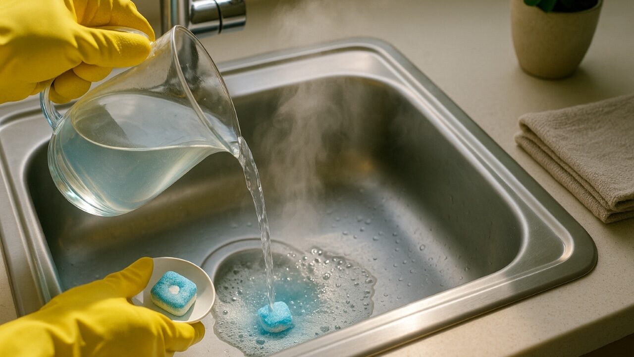 Como limpar encanamento utilizando pastilhas de lava-louças?