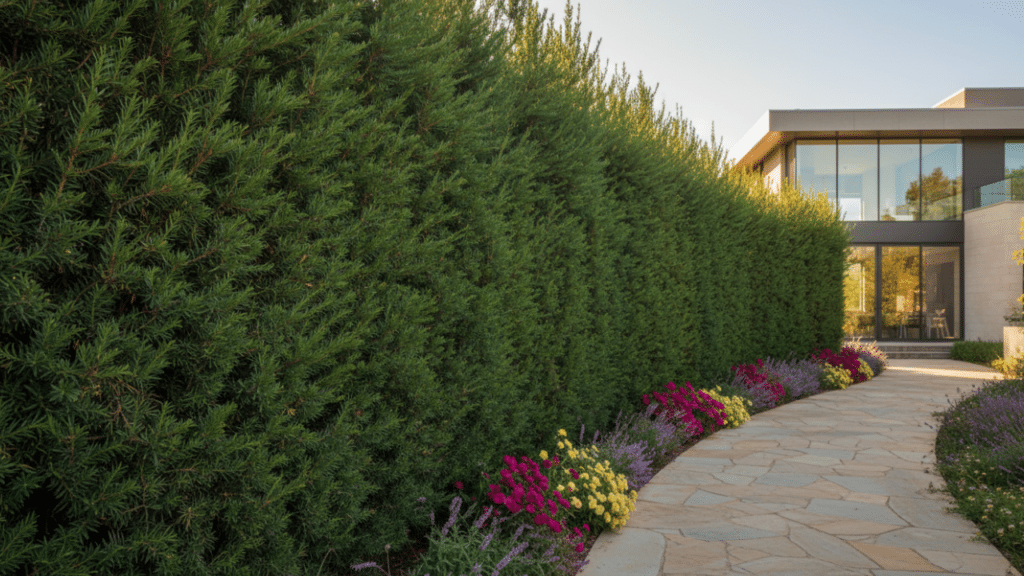 O Podocarpus é um clássico da jardinagem sofisticada, muito usado em condomínios e residências de alto padrão. Seu porte vertical e aparência limpa dão um ar de organização e requinte ao espaço.