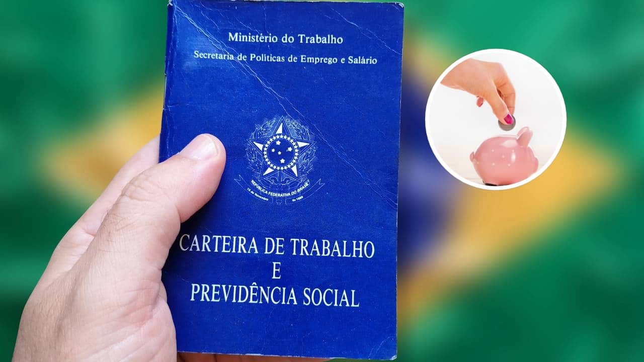 Segurando Carteira de Trabalho e Previdência Social com bandeira do Brasil ao fundo (Créditos: depositphotos.com / gustavomello162.hotmail.com // Créditos: depositphotos.com / AndrewTovstyzhenko)