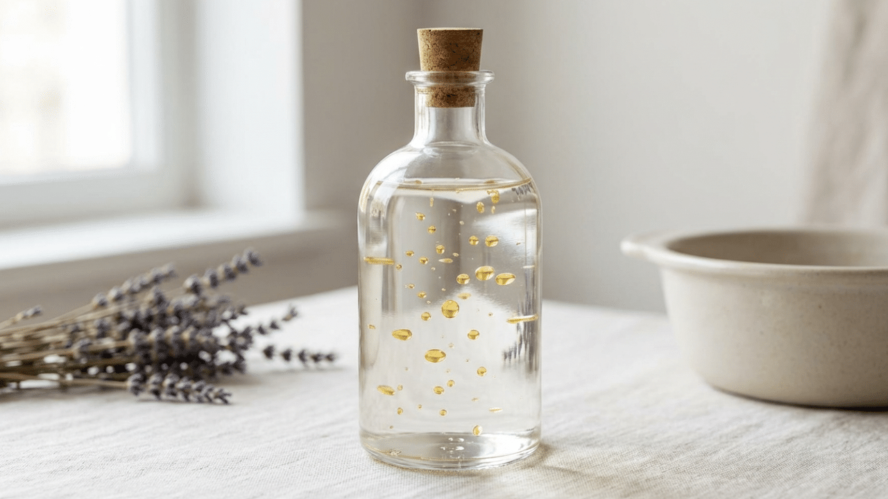 | Óleo essencial (lavanda, limão, laranja ou hortelã-pimenta) | 40 gotas | Perfuma e adiciona benefícios aromáticos |