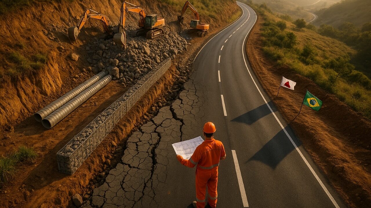 O foco principal das intervenções está no km 33, onde a instabilidade do solo exige soluções especiais. As obras incluem escavações em rocha, construção de muros de gabião e implementação de um sistema aprimorado de drenagem, fundamentais para garantir estabilidade e segurança.
