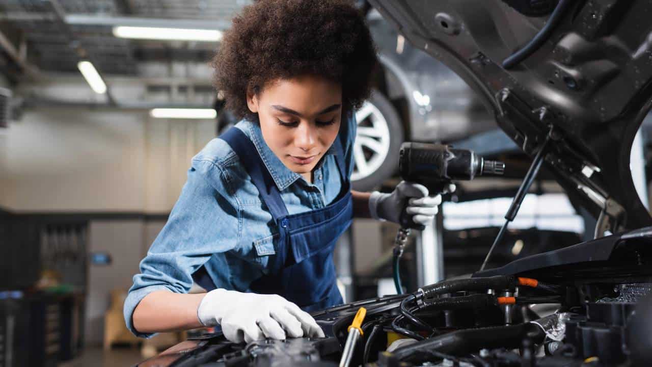 Mecânica inspecionando motor de carro elétrico (Créditos: depositphotos.com / HayDmitriy)