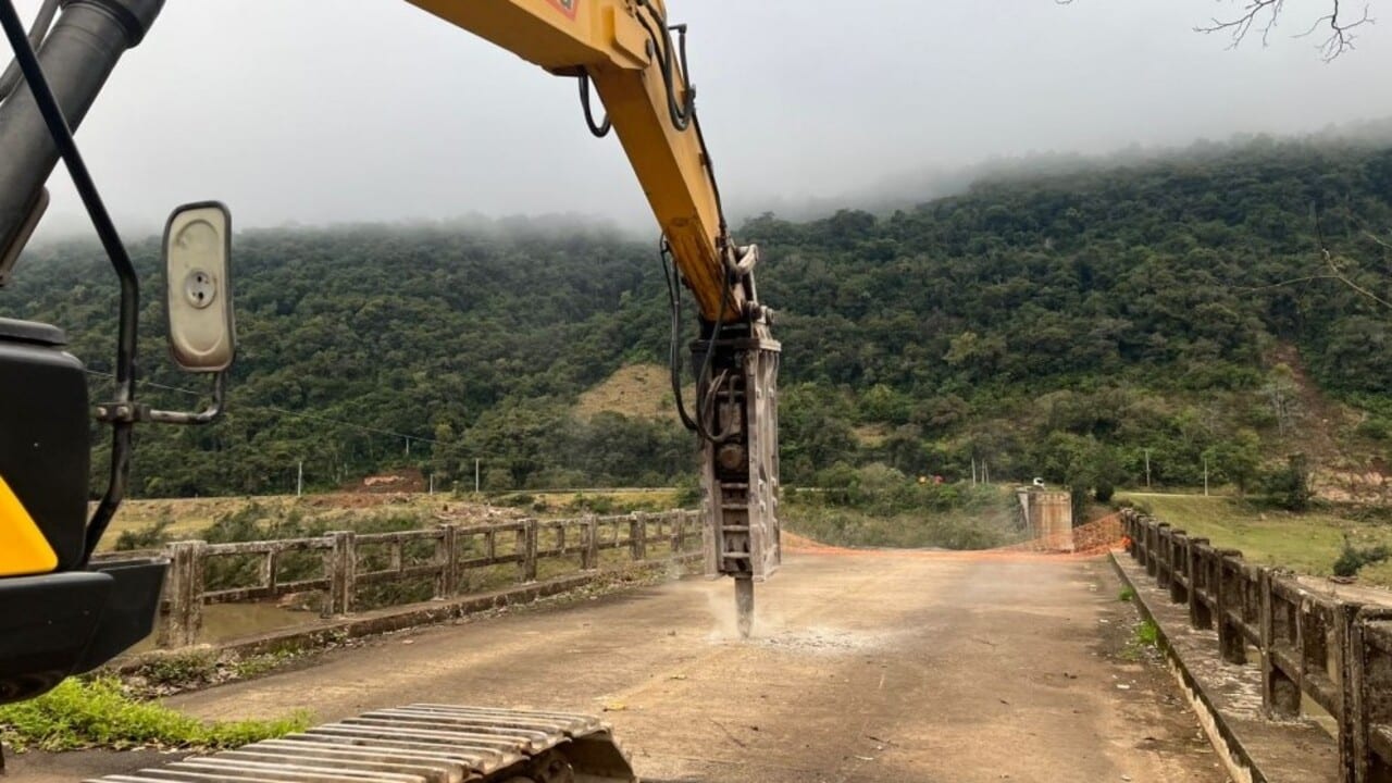 Reconstrução da ponte de Santa Bárbara de R$ 31,3 milhões ganha ritmo acelerado com novos pilares em execução