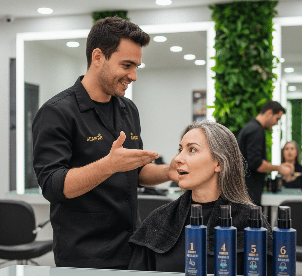 Por isso, cabeleireiros recomendam uma estratégia que combina proteção, precisão e tempo de ação controlado. Ao adaptar métodos profissionais para o uso doméstico, torna-se mais fácil cobrir os fios brancos com segurança e acabamento mais limpo, próximo ao padrão de salão.