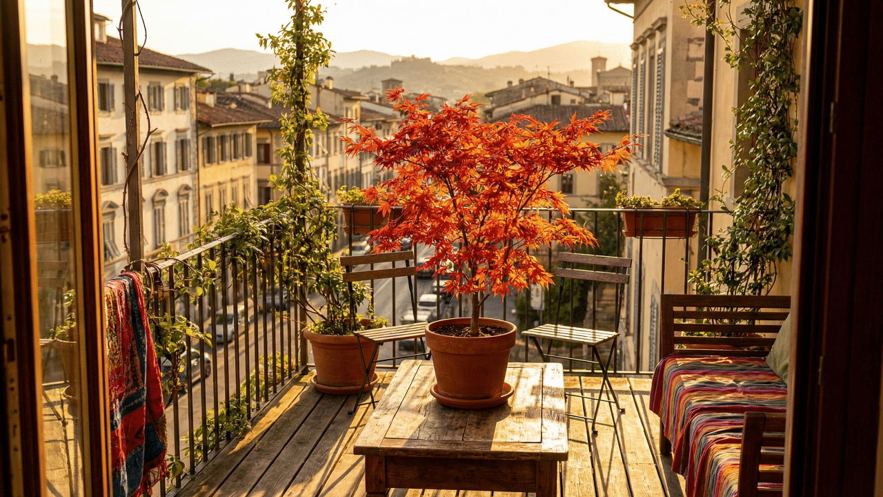 Além da beleza e do porte reduzido, o Acer palmatum oferece um visual sofisticado e facilmente combinável com diferentes estilos de decoração. Ele funciona tanto em ambientes minimalistas quanto em varandas rústicas e modernas, criando um ponto focal de grande elegância.