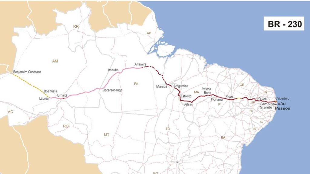 A BR-230 é a 3ª maior BR do Brasil, com mais de 4 mil quilômetros, conectando o litoral do Nordeste ao coração da Amazônia e atravessando principalmente Paraíba, Piauí, Maranhão, Pará e Amazonas. Em muitos trechos, é a única ligação terrestre entre cidades isoladas e centros maiores, sendo vital para o escoamento de produção agrícola, transporte de insumos e acesso a serviços públicos.