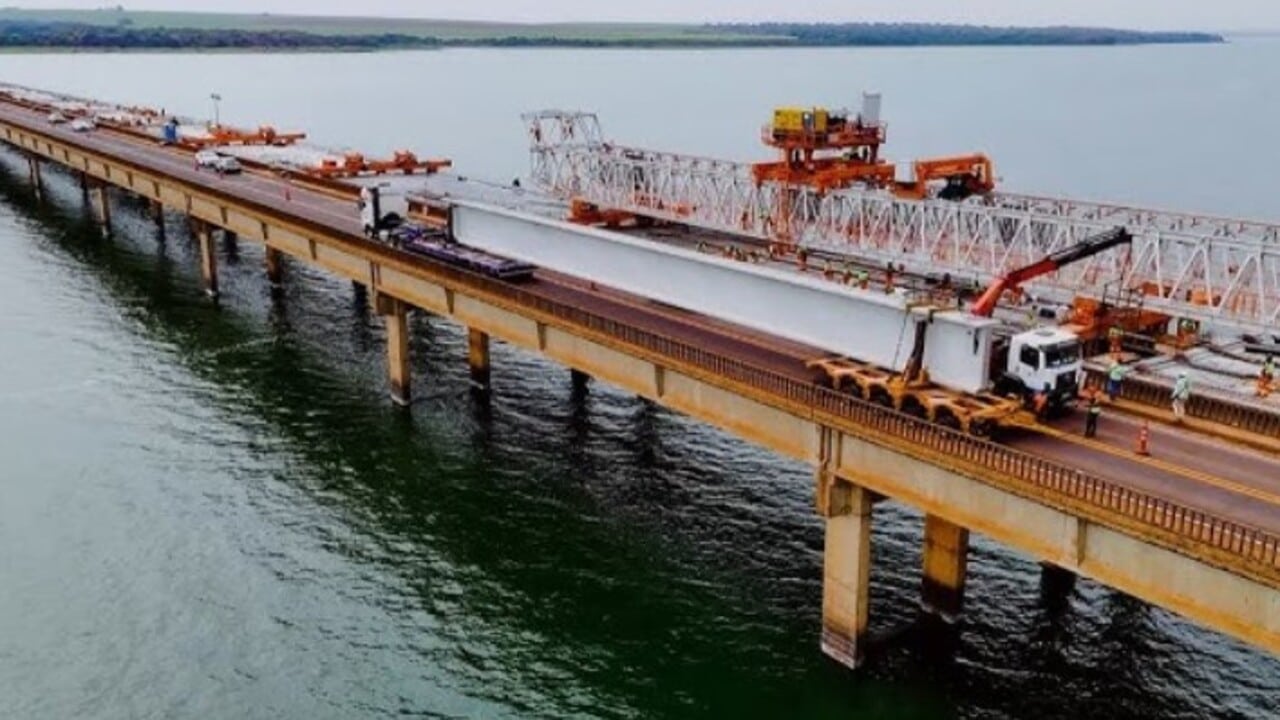 Do ponto de vista construtivo, a ponte utiliza 208 vigas pré-moldadas, cada uma com 41 metros de comprimento e peso aproximado de 74 toneladas. Essas vigas são produzidas em uma usina instalada no próprio canteiro de obras, o que reduz custos logísticos, riscos de transporte e permite maior controle de qualidade e produtividade.
