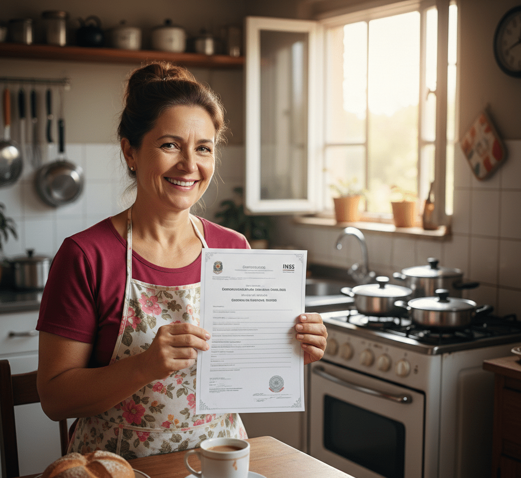 O primeiro passo para a dona de casa ter direito à aposentadoria pelo INSS é fazer a inscrição como contribuinte facultativa no RGPS. Esse cadastro pode ser realizado pelo site ou aplicativo Meu INSS, ou pela Central 135, bastando informar dados pessoais básicos e CPF, sem necessidade de deslocamento até uma agência em grande parte dos casos.