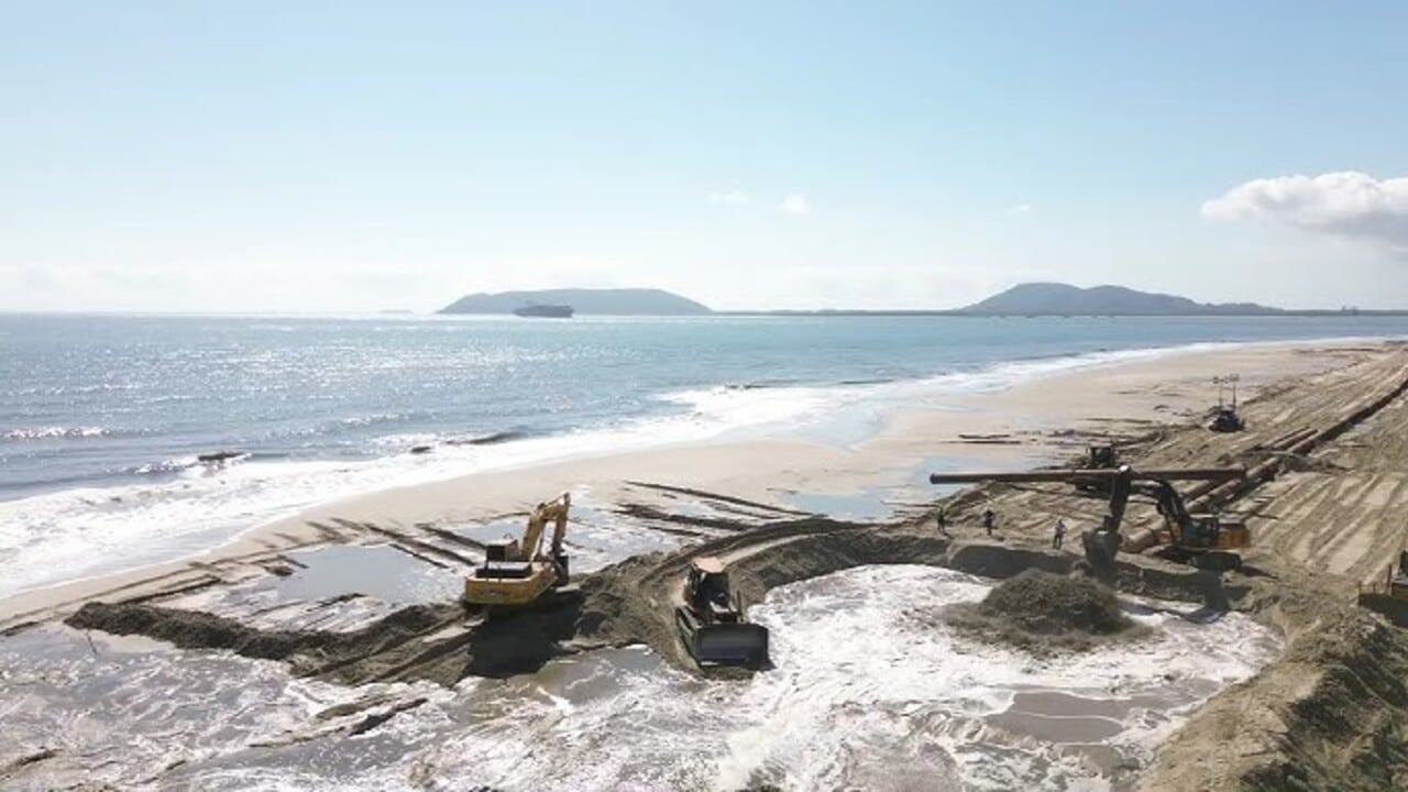 Maior obra de alargamento de praia do Brasil ultrapassa 50% com investimento de R$ 333 milhões em SC