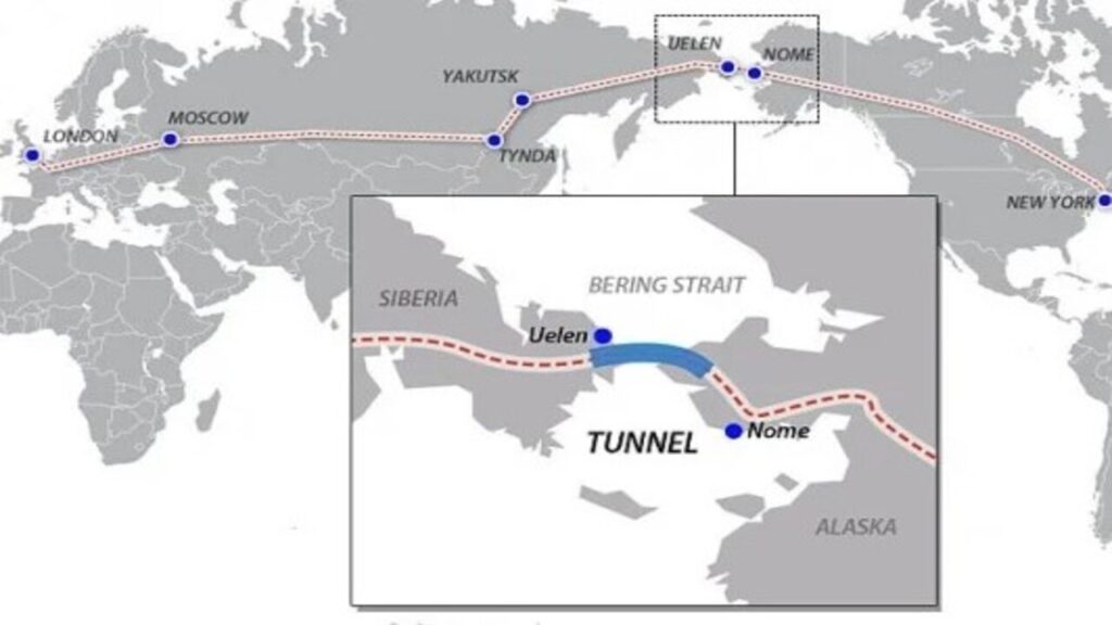 O chamado túnel “Putin-Trump” foi sugerido por Kirill Dmitriev, chefe do Fundo de Investimento Direto da Rússia (RDIF), como uma ferrovia de carga e passageiros sob o Estreito de Bering. A ligação teria cerca de 112 quilômetros de extensão, seria construída em até oito anos e teria orçamento estimado em 8 bilhões de dólares, valor que especialistas consideram bastante otimista.