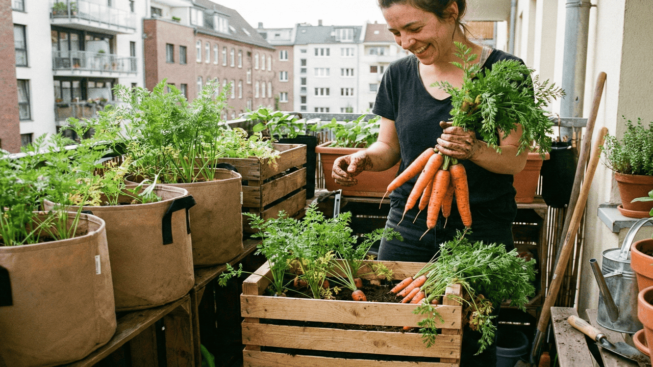 Cenouras se adaptam bem a vasos, jardineiras e pequenos espaços, tornando o cultivo acessível para quem mora em apartamentos. A raiz cresce em profundidade moderada, exigindo apenas solo leve e boa drenagem, o que elimina a necessidade de hortas grandes ou terrenos preparados. Isso permite plantar até em varandas ensolaradas.