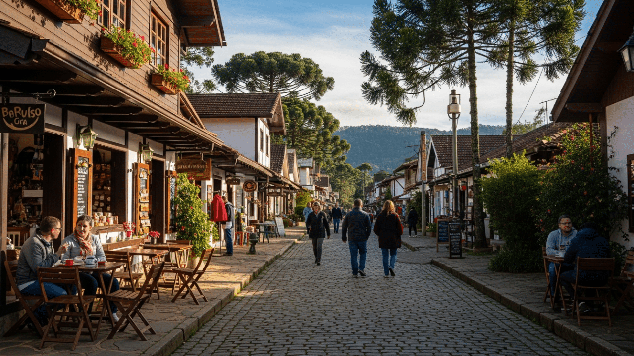 O frio da montanha é o pretexto perfeito para a rica gastronomia local. A Avenida Monte Verde é um corredor de sabores onde o aroma de chocolate quente e de fondues de queijo se misturam. A influência dos imigrantes europeus (letões, alemães e suíços) é visível nos pratos como o Apfelstrudel e nas cervejarias artesanais que produzem rótulos premiados com a água pura da serra.