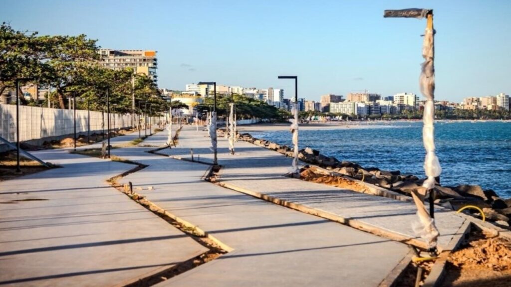 Também está prevista a instalação de um guarda-corpo em toda a extensão da obra, importante em áreas à beira-mar e com desníveis. Com isso, o Passeio do Porto tende a oferecer um ambiente mais protegido para crianças, idosos e pessoas com mobilidade reduzida, preservando a vista para o mar e prolongando a vida útil dos equipamentos. Veja imagens da Orla de Maceió no vídeo divulgado pela Prefeitura de Maceió, via Instagram: