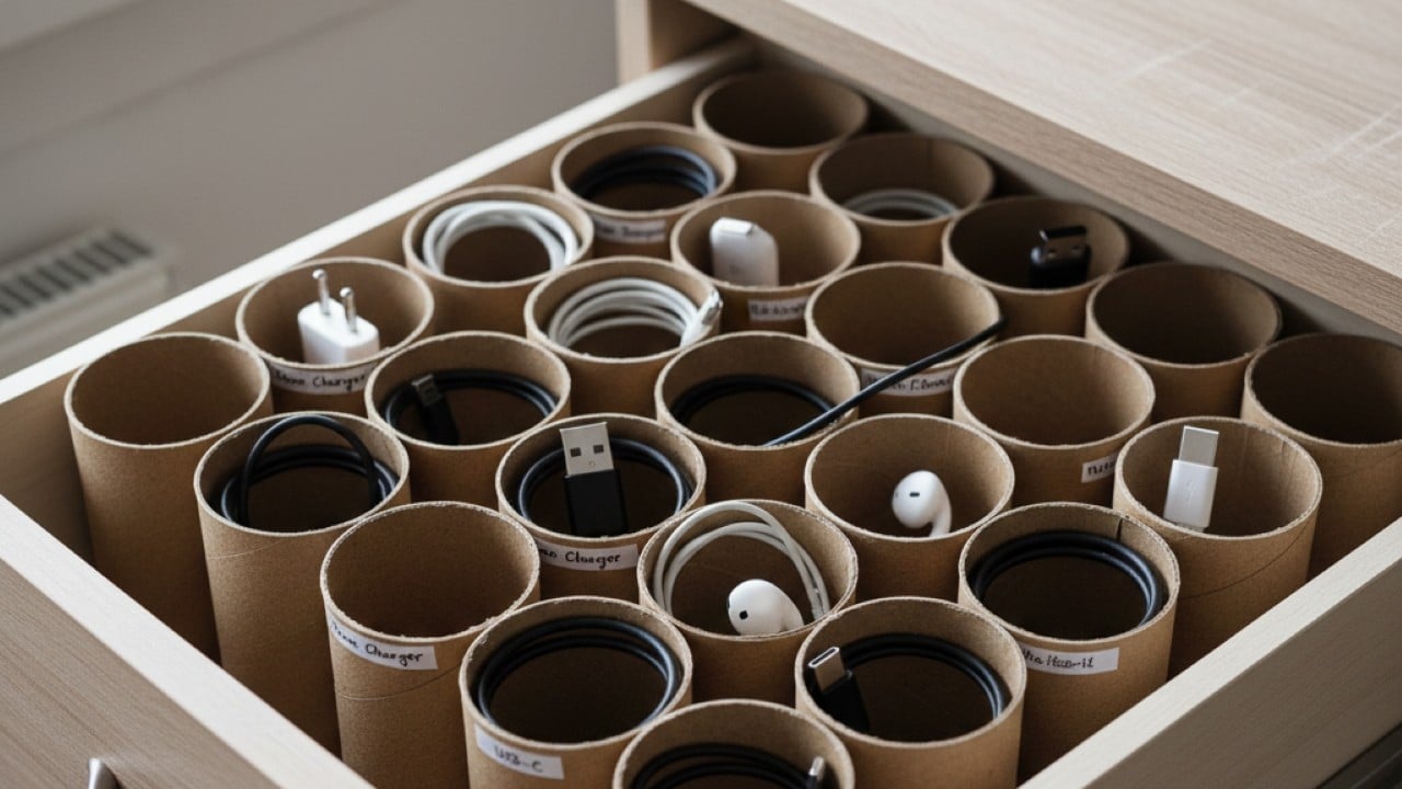 Organizar cabos e carregadores costuma ser um desafio em muitas casas. Gavetas cheias de fios enrolados, tomadas com extensões misturadas e mochilas com carregadores soltos são situações comuns no dia a dia. Uma alternativa simples e de baixo custo vem ganhando espaço: transformar tubos de papelão em organizadores de fios, usando apenas materiais que normalmente iriam para o lixo. Essa solução caseira reúne praticidade e reaproveitamento, tornando a rotina mais funcional e sustentável.