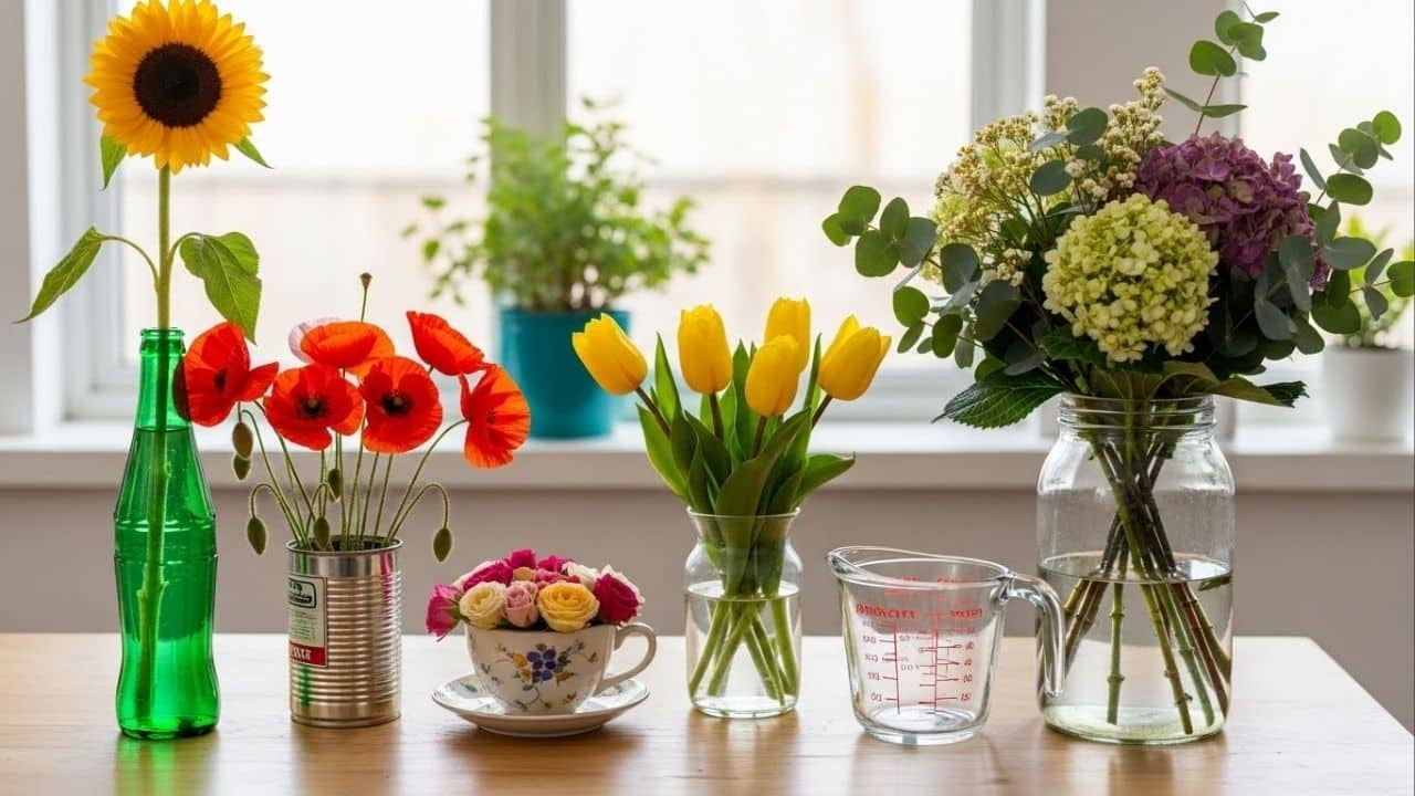 Garimpar itens em feiras de antiguidades ou no fundo do próprio armário revela tesouros esquecidos que viram suportes incríveis. Recipientes com texturas diferentes criam um ritmo visual único que os vasos de plástico comuns não conseguem oferecer.