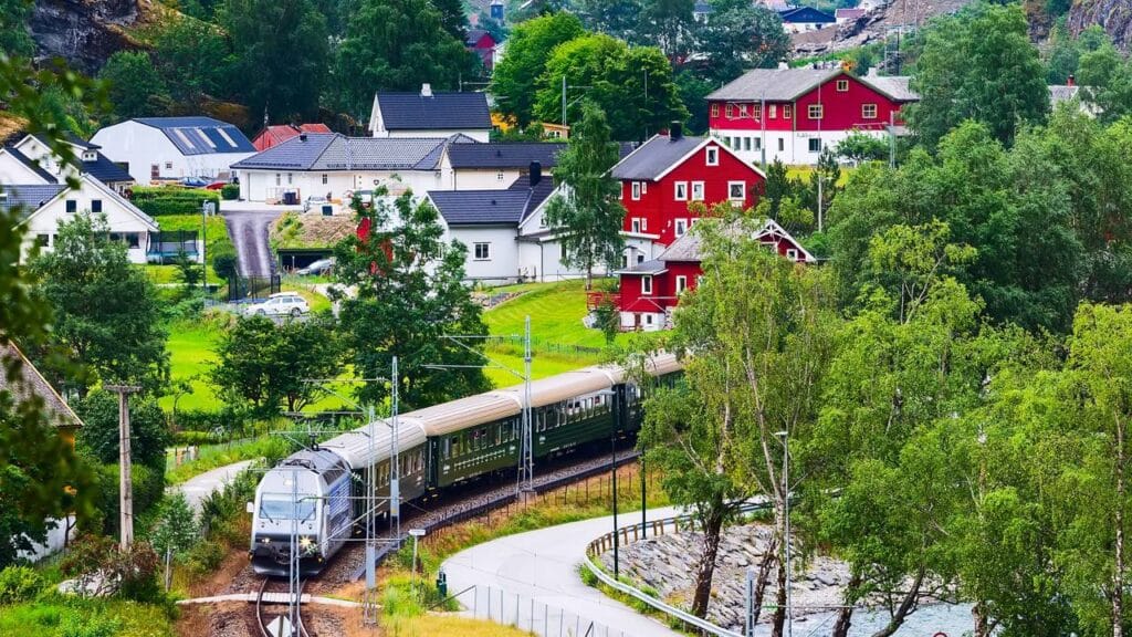 A Flåm Railway, ou Flåmsbana, chama a atenção por um dado curioso: em apenas 20 quilômetros de trilhos, o trem vence um desnível de 866 metros entre as estações de Myrdal e Flåm, na costa oeste da Noruega. O que poderia ser um simples deslocamento se transformou em um dos passeios ferroviários mais procurados do país, atraindo visitantes que desejam observar de perto vales profundos, cachoeiras e montanhas íngremes, consolidando-se como um símbolo da integração entre engenharia e natureza.
