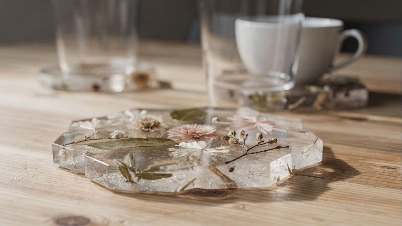 Entre os itens que mais chamam a atenção em uma mesa bem arrumada, as bases de copo artesanais em resina vêm ganhando espaço. Pequenas no tamanho, essas peças funcionam como apoio para copos e xícaras, proteção para superfícies e também como elemento decorativo, especialmente quando combinam resina transparente com flores secas, folhas e outros itens naturais.