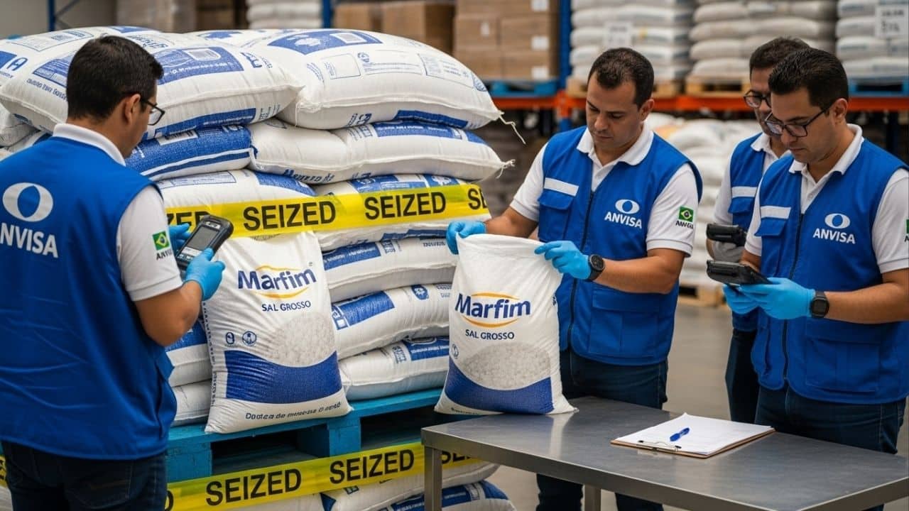 O Sal Marinho Grosso Iodado Marfim, produzido por M Gomes Praxedes Ltda., teve o lote 901124 recolhido e a comercialização suspensa em todo o território nacional. A decisão foi tomada após laudo definitivo do Laboratório Central de Saúde Pública do Distrito Federal (LACEN-DF) reprovar o produto no teste de teor de iodo, o que impede sua venda, distribuição e consumo até nova decisão das autoridades.