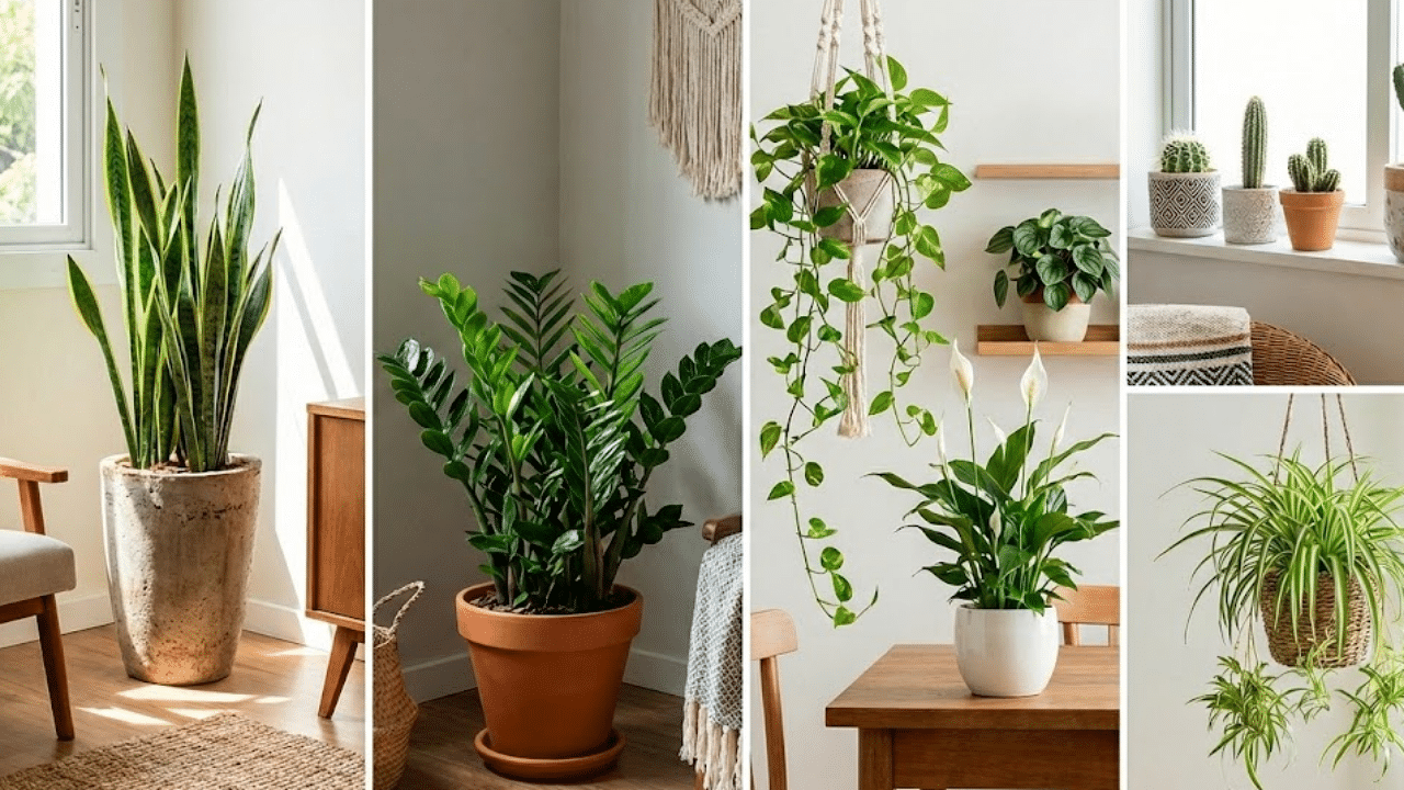 • Zamioculca: Perfeita para ambientes com pouca luz. Folhas brilhantes e estrutura elegante.