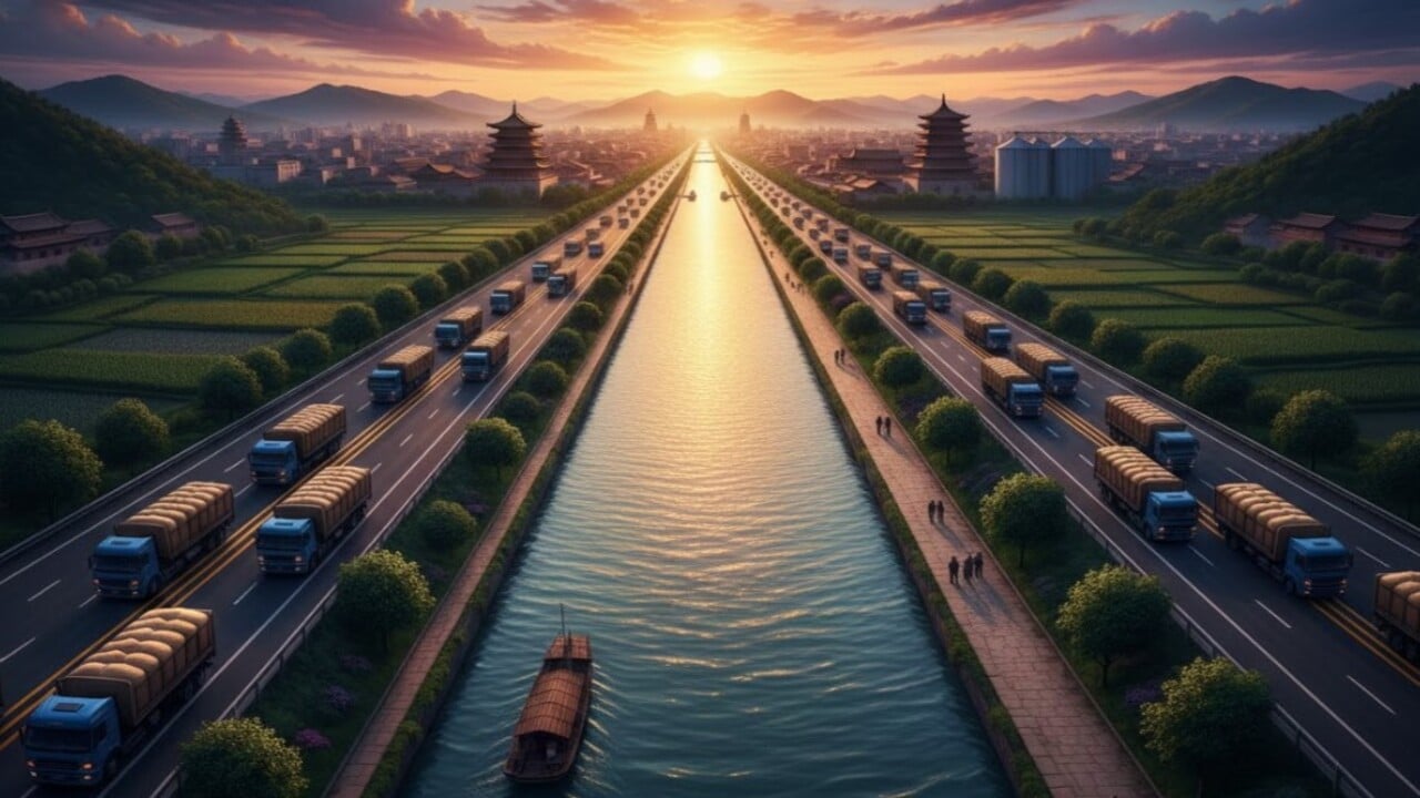 A importância histórica do Grande Canal está associada à unificação territorial e ao fortalecimento do poder central, ao permitir o transporte de grãos das áreas férteis do sul para as regiões mais secas e politicamente sensíveis do norte. Essa logística fluvial reduziu riscos de desabastecimento em centros administrativos e militares, servindo também para deslocar tropas, tributos e mensagens oficiais.