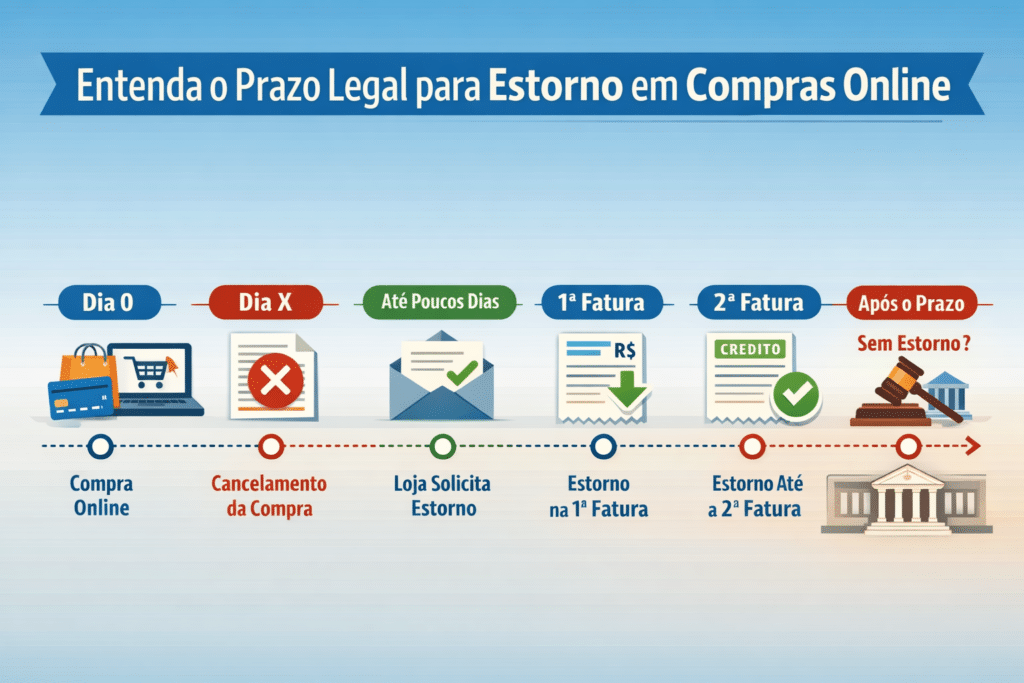 Embora as operadoras de cartão costumem pedir entre uma e duas faturas para processar o crédito, o Código de Defesa do Consumidor exige que a devolução seja imediata após o cancelamento.
