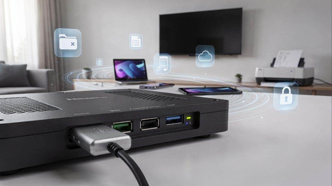 A porta USB do roteador pode assumir vários papéis conforme o tipo de dispositivo ligado e os recursos do firmware, indo além da simples partilha de arquivos e aproximando-se de um NAS básico ou de um servidor multimédia doméstico. Essa versatilidade torna o roteador um ponto central de armazenamento e serviços para toda a casa.