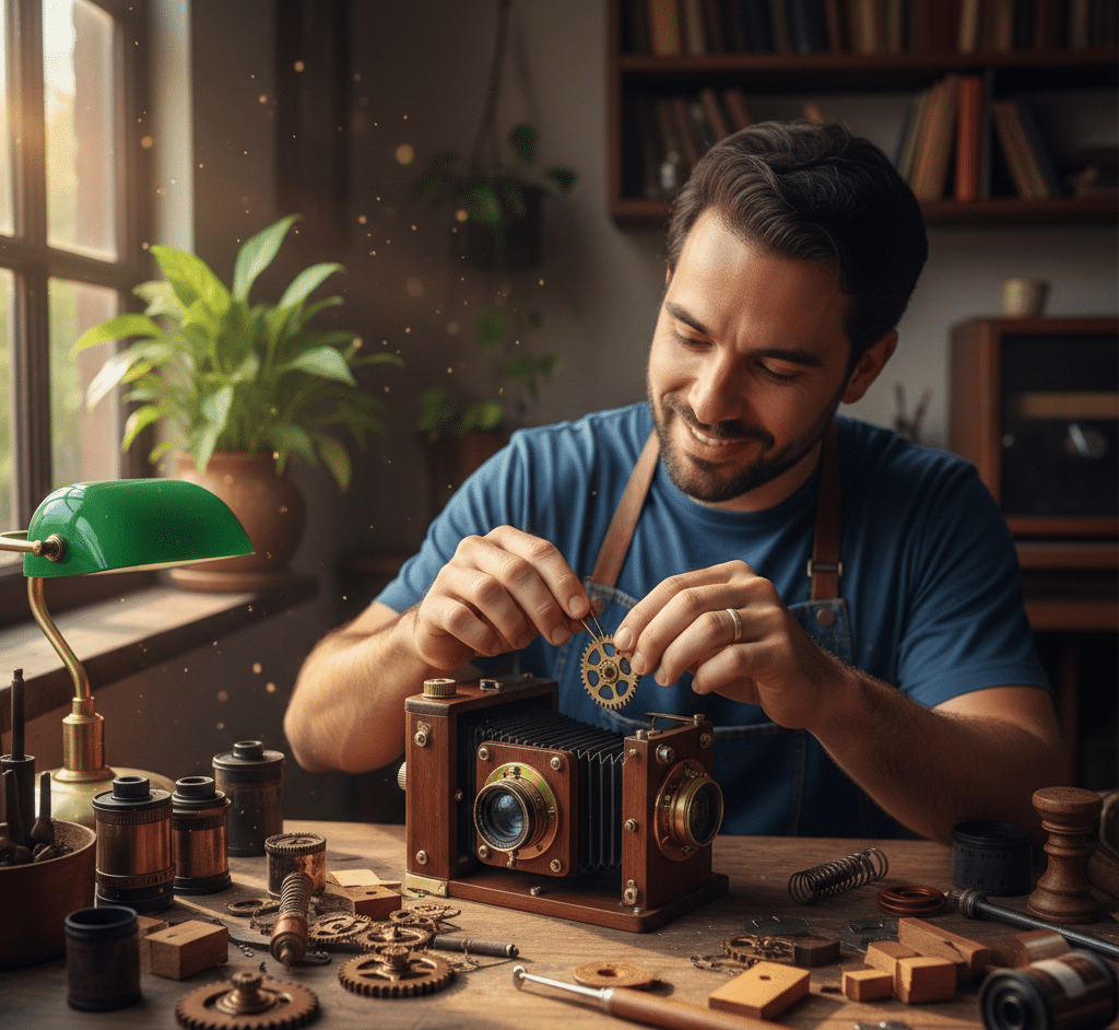 - Vazamento de luz: Qualquer fresta mínima queimava o filme, exigindo muita fita isolante e tinta preta para vedar tudo.