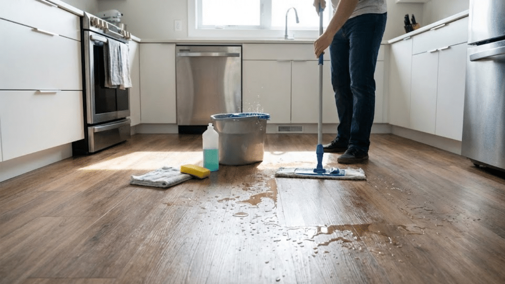 A camada superior do revestimento sintético possui proteção contra umidade, facilitando a higienização com apenas um pano levemente umedecido. O material impede a absorção de líquidos, o que evita o surgimento de mofo ou o descolamento precoce.