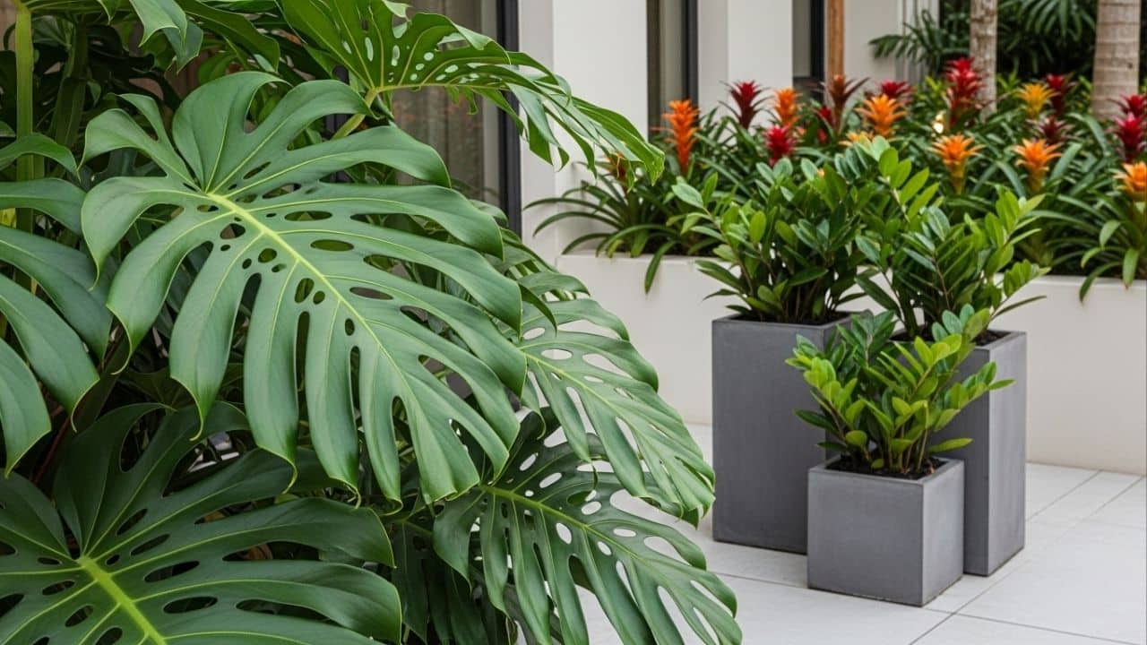 Transformar a área externa em um refúgio sofisticado é totalmente possível usando as plantas ideais para criar um jardim que parece de resort, como a Monstera, a Zamioculca e as Bromélias. Essas espécies tropicais garantem volume e frescor imediato, exigindo pouca manutenção para manter o visual impecável de hotel de luxo durante o ano todo.