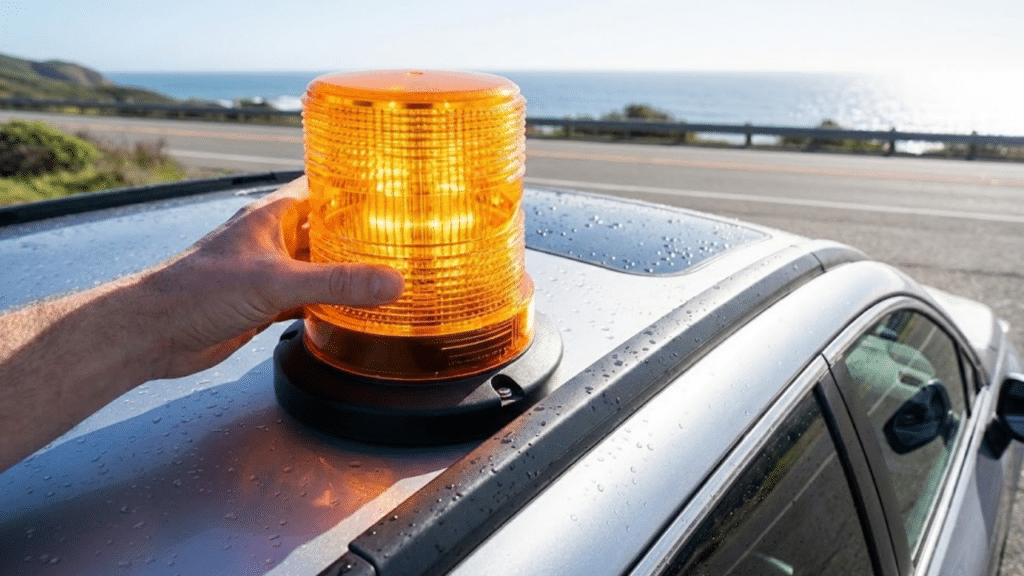 A principal vantagem técnica da V16 é sua capacidade de sinalização superior, especialmente à noite ou sob chuva intensa. O feixe de luz amarelo alerta o tráfego com muito mais eficácia que o reflexo passivo dos equipamentos antigos.