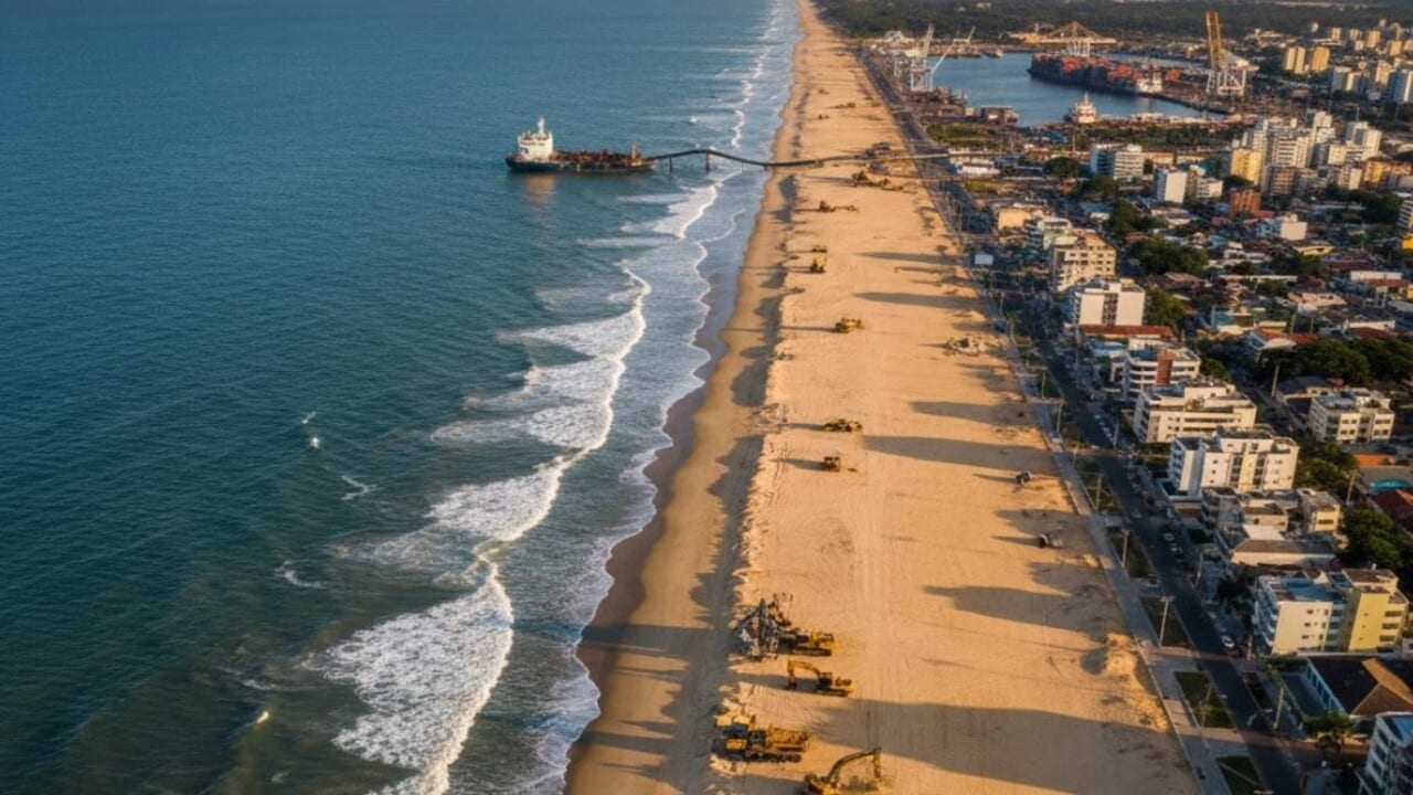 Itapoá reúne a maior extensão litorânea de Santa Catarina e um terminal portuário em expansão, beneficiado pelo aprofundamento da Baía da Babitonga. Assim, a mesma operação melhora a recepção de navios de maior porte, amplia a relevância logística da região e cria uma nova faixa de proteção contra a erosão, reduzindo impactos sobre calçadas, vias e edificações próximas ao mar. Com 58,5% de execução, os próximos meses devem concentrar esforços na conclusão dos 8,8 quilômetros previstos e na meta de 6,4 milhões de metros cúbicos de areia. Após a fase física principal, ganham destaque o monitoramento pós-obra, a análise da estabilidade da nova faixa de areia e o planejamento do uso urbano e turístico desses novos espaços. Veja imagens do andamento das obras no vídeo divulgado pela Prefeitura de Itapoá: