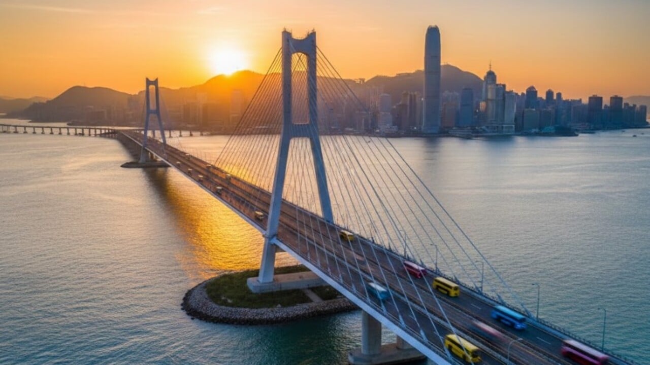 Com cerca de 55 quilômetros, a maior ponte-túnel marítima do planeta conecta Hong Kong e Macau, ambos territórios com status de Região Administrativa Especial, à cidade de Zhuhai, na China continental. A inauguração em 23 de outubro de 2018 foi tratada como um marco da integração da Grande Baía, que reúne centros financeiros, industriais e turísticos de alto peso econômico.