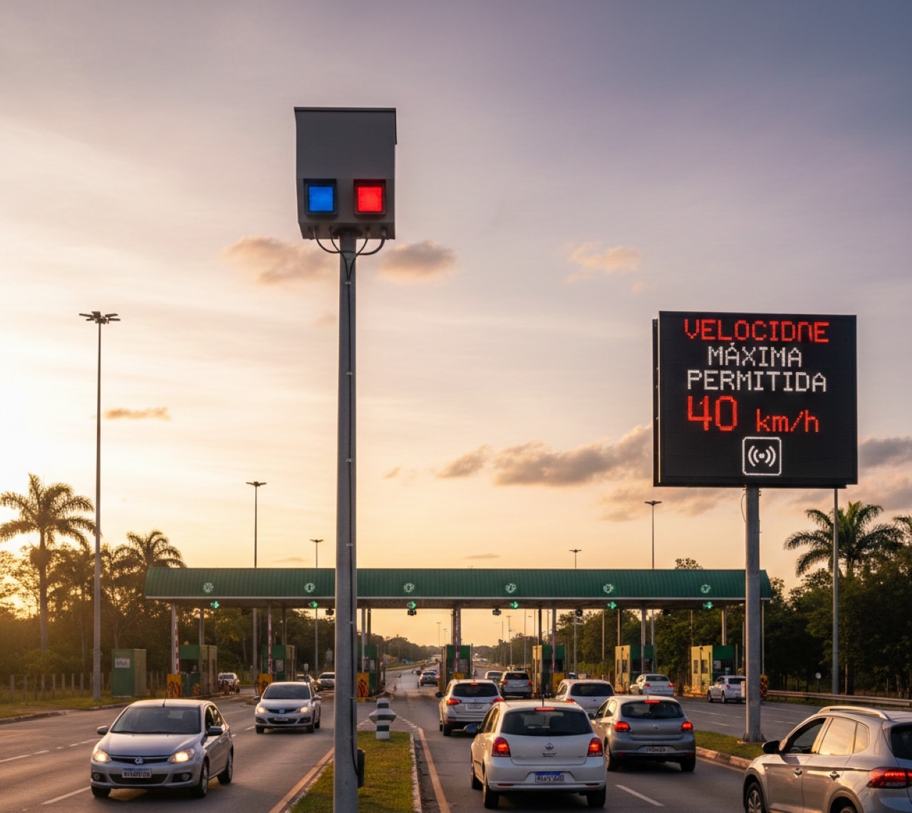 As praças de pedágio costumam ter redução de velocidade sinalizada, com limites mais baixos do que o restante da rodovia. No levantamento divulgado, os pontos fiscalizados incluem praças com limite de 40 km/h, valor típico nesses locais para garantir controle do fluxo e segurança na aproximação das cabines.