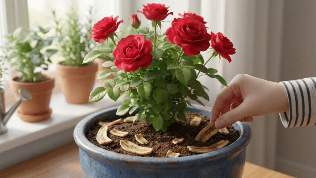 A casca de banana realmente faz a roseira florir mais?