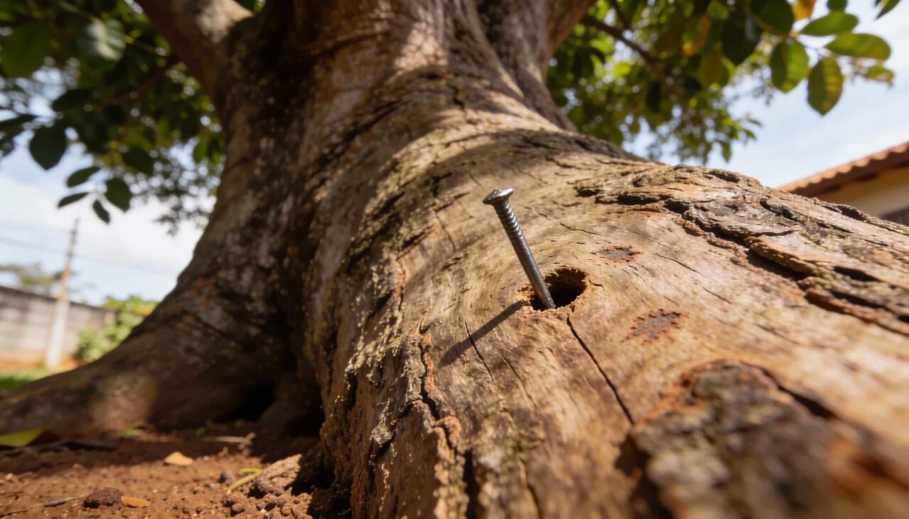 Em muitos quintais ainda se repete a ideia de que martelar um prego no tronco ajuda a “salvar” uma macieira com folhas amarelas. A cena chama atenção: alguém se aproxima da árvore com martelo e prego, mira o tronco e acredita estar oferecendo um reforço de ferro. Essa crença passa de geração em geração, mas hoje, com o que já se sabe sobre plantas e solo, é possível entender melhor o que realmente está por trás desse tipo de dica popular e por que ela não funciona como se imagina.