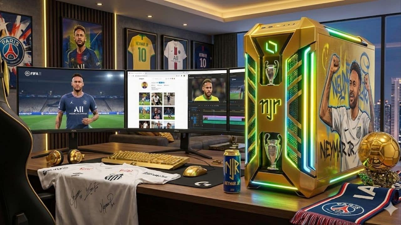 O novo setup de Neymar Jr. é uma máquina de R$ 48 mil equipada com a inédita placa de vídeo RTX 5090 e o processador AMD Ryzen 9 9950X3D. O projeto exclusivo do canal Reset une desempenho extremo para criação de conteúdo e uma estética personalizada com tecido de camisas oficiais do jogador.