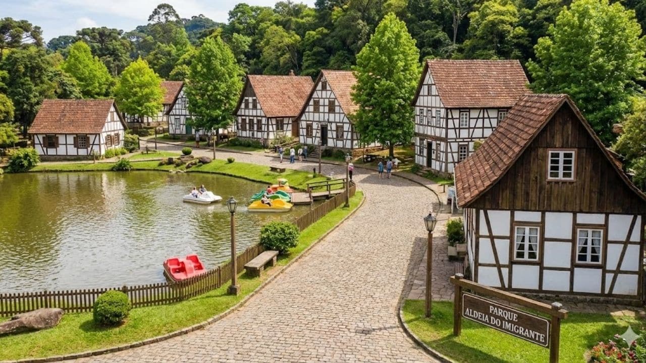 É o palco principal do Festival Internacional de Folclore, evento que celebra a diversidade cultural e lota a cidade em julho. A visita é uma imersão silenciosa na vida dos colonos, cercada por mata nativa e lagos de pedalinho.
